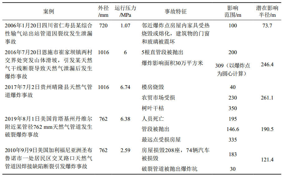 关键词:天然气长输管道;安全距离;潜在影响半径;热辐射通量;爆炸场超压