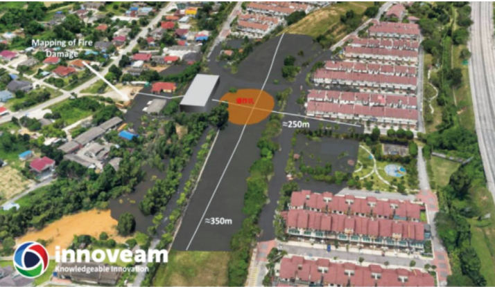 2025年4月1日上午约8点10分,马来西亚国家石油和天然气公司(Petronas)所辖的一天然气管道发生泄漏爆炸事故并引发大火,事故发生在马来西亚雪兰莪州蒲种市,火焰高达30 m,有目击者称火柱数百米、形成蘑菇状火球,远在数公里外清晰可见,爆炸中心附近温度高达约1000℃。事故未造成人员死亡,约150人受伤,67人住院治疗;爆炸半径325 m范围内的439套房屋中219套房屋受到了不同程度的损坏,其中87套严重焚毁,132套房屋受损或成为危楼(图 1)。275辆汽车和56辆摩托车被毁。事故造成经济损失估计在6430万令吉(约1460万美元)。警方对事故现场周边500 m范围进行了管控并对管控范围内的500余人进行了疏散。