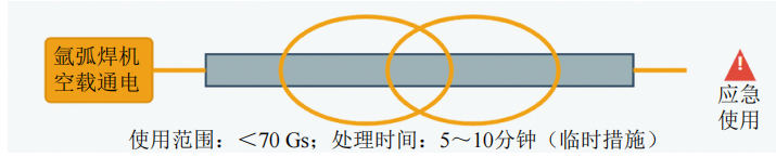 (2)分类制定消磁操作规范。根据工作实践,总结出一套可复制的消磁方法分类标准,结合管径、材质与磁场强度建立“剩磁等级判定与操作指南”。如:轻度剩磁(<50 Gs):直接采用交流消磁;中度剩磁(50 Gs~100 Gs):选择直流或组合方式;重度剩磁(>100 Gs):配合屏蔽罩、搭桥导磁等手段分步骤退磁;并同步制定“应急消磁SOP卡片”,张贴于作业车或集控车间,指导现场快速决策。