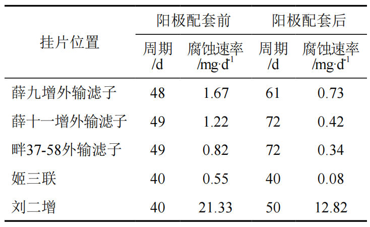 表 1 牺牲阳极短节安装前后腐蚀速率对比