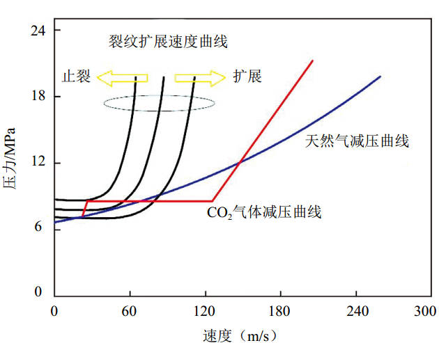 (3)在管材选择上,要根据介质组分和运行工况判定其腐蚀性,合理选择耐腐蚀管材或采取其他内腐蚀控制措施。对于钢制管道要进行断裂控制设计,防止长程的延性断裂扩展(图 5)。