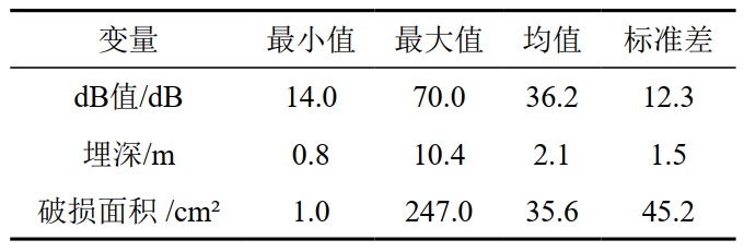 (2)管道埋深对dB值具有显著的负向影响( r =﹣0.217),是导致单纯依靠dB值评估破损面积产生偏差的重要因素。