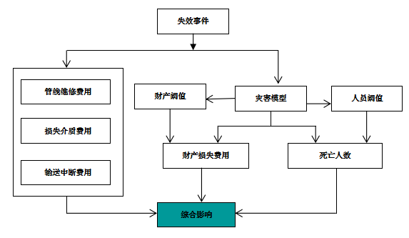 针对高后果区、地区等级升级地段,采用基于历史失效数据和基于可靠性理论的计算模型,考虑天然气管道失效模式对后果的影响,建立管道失效概率计算方法;分析管道事故灾害类型,并考虑财产损失、人员伤亡、管道破坏、服务中断和介质损失等管道失效后果情景,建立天然气管道失效后果的定量估算模型[18]。