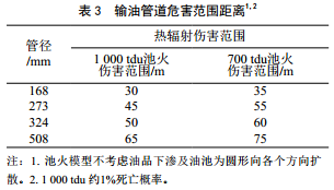 因此,推荐的液体管道热辐射伤害范围如表 2 所示。