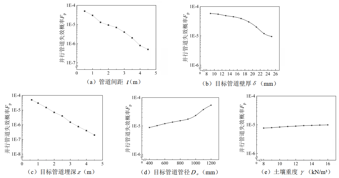 (1)并行管道设计阶段,各参数对并行管道失效概率影响程度从大到小依次为管道水平间距、土壤埋深、管道壁厚、管道内径、土壤重度。