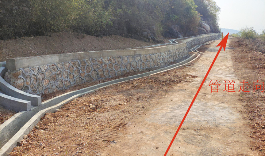 现场发现该地段存在发生地质灾害的潜在可能性,包括人工边坡危岩体崩塌、浆砌石护坡体破损、排水体系局部缺失及可能存在的管道被山坡滑移体整体推移。极易导致油气管道断裂、变形、防腐层受损以及光缆等附属设施损毁致使管道失效。