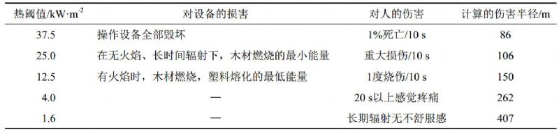 表 3 水平喷射火焰伤害半径计算表