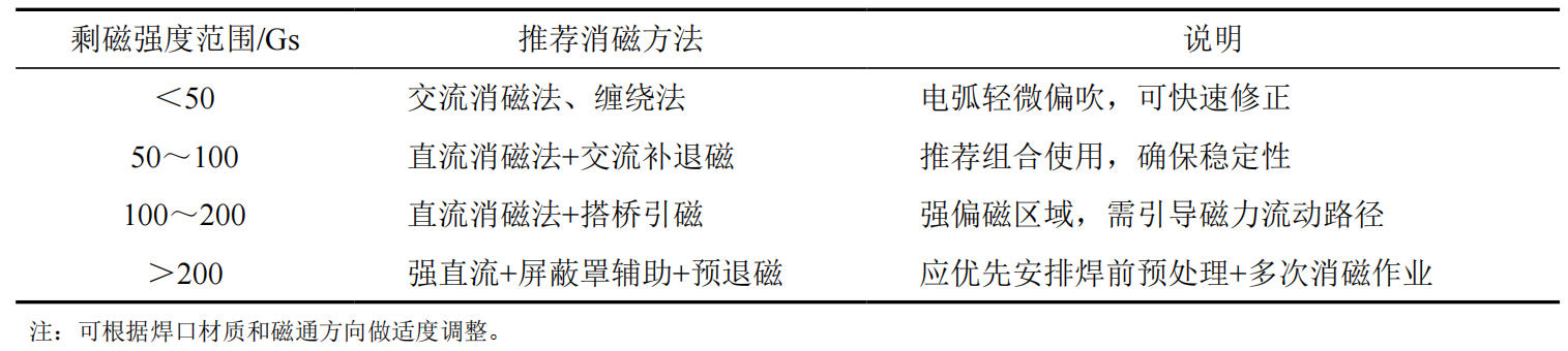 漏磁检测虽提升了风险识别能力,但剩磁影响不可忽视,对电弧引燃稳定性、熔池成型与焊接质量存在显著干扰。不同剩磁强度需匹配不同消磁方法,交流消磁、直流消磁与缠绕焊把线法各有侧重,应因地制宜使用。制度化、标准化是解决磁偏吹问题的关键路径,需从剩磁检测、作业规范、技术培训、设备选型等多维度协同推进。数字化管理平台有助于经验积累与快速响应,可作为技术传承与智能分析的重要工具。