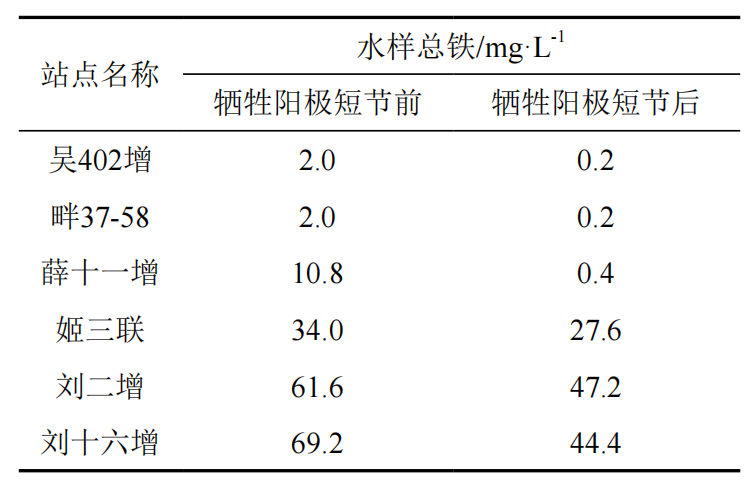 表 2 牺牲阳极短节前、后端水样总铁对比
