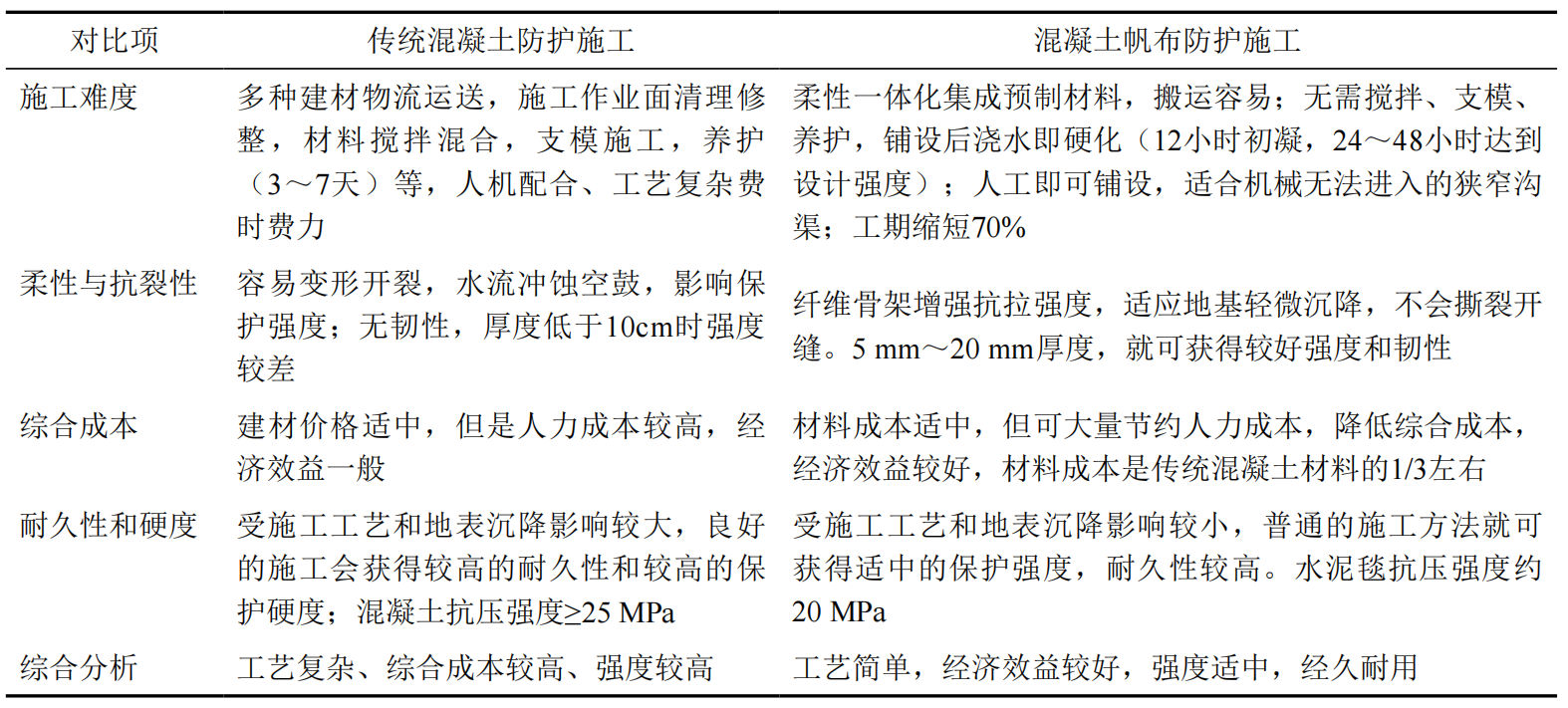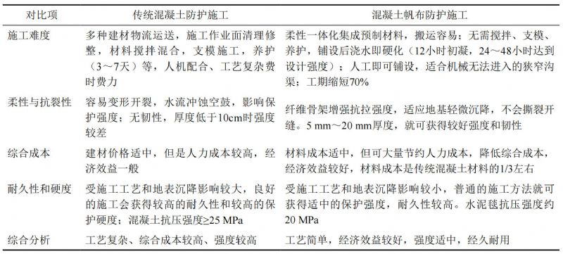 表 2 混凝土帆布与常规混凝土施工对比分析