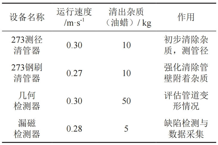 漏磁检测前实施2次清管作业,配合几何检测完成管道状态评估,具体流程见表 2。