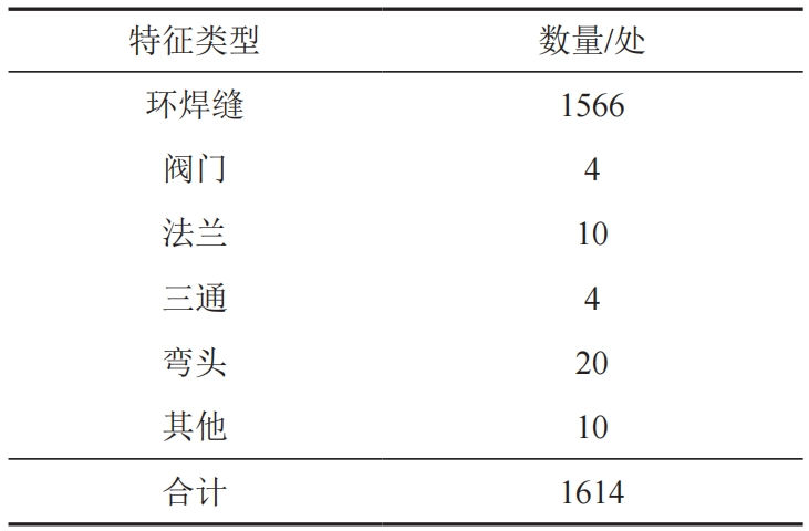 本次管道全口径内检测共识别各类检测点位3610处,依据GB/T 27699―2011《钢质管道内检测技术规范》分类标准,其中缺陷及运行异常点位1966处,管道本体固有结构及合规附属设施特征点位1614处,分别见表 3、表 4。