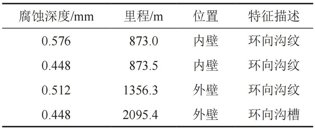现场检测结果表明,漏磁检测方法可以用来准确定位各类缺陷,获得的检测数据可为管道的安全评估提供翔实的依据[8]。