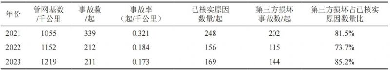 表 1 2021—2023年全国燃气管网事故统计